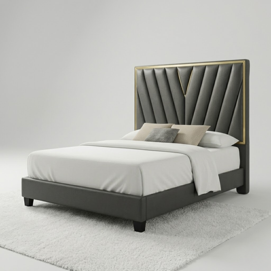 Faith Upholstered Bed | Grove Grey Fabric, Engineered Wood Frame, Queen & King Sizes