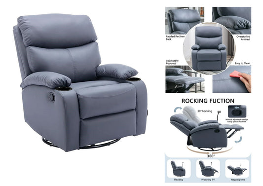 ELISE Recliner Chair | Air Leather Manual Recliner with Cup Holders and Side Pockets