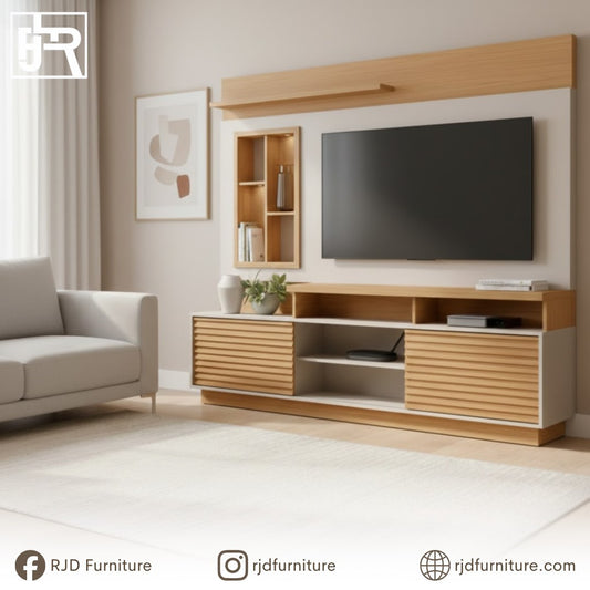 RJD TV Consoles, Wall Panels, and Entertainment Cabinets offer durable build and smart storage for a clean, organized space.